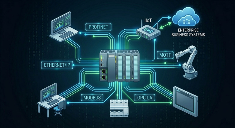 يُعدّ التقارب بين تكنولوجيا التشغيل (OT) وتكنولوجيا المعلومات (IT) أبرز التوجهات في عام 2026، وهنا يبرز دور إنترنت الأشياء الصناعية (IIoT). لم تعد أنظمة التحكم المنطقية القابلة للبرمجة (PLC) الحديثة معزولة، فبفضل بروتوكولات مثل OPC UA وMQTT، بات بإمكانها بث بيانات الأداء في الوقت الفعلي مباشرةً إلى منصات الحوسبة السحابية مثل AWS أو Azure.